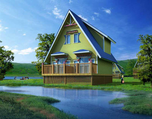 千鷺湖茅草木屋